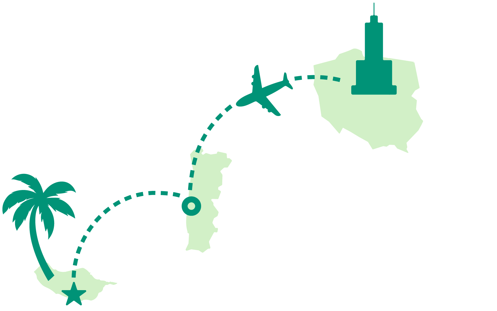 Dzięki krótkiej przesiadce w Lizbonie, podróż będzie podzielona na dwa wygodniejsze odcinki.